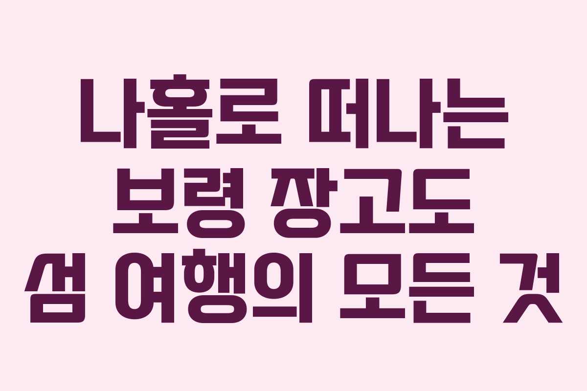 - 🤔 나홀로 떠나는 보령 장고도 섬 여행과 관련하여 진짜 궁금한 것들 (FAQ)
