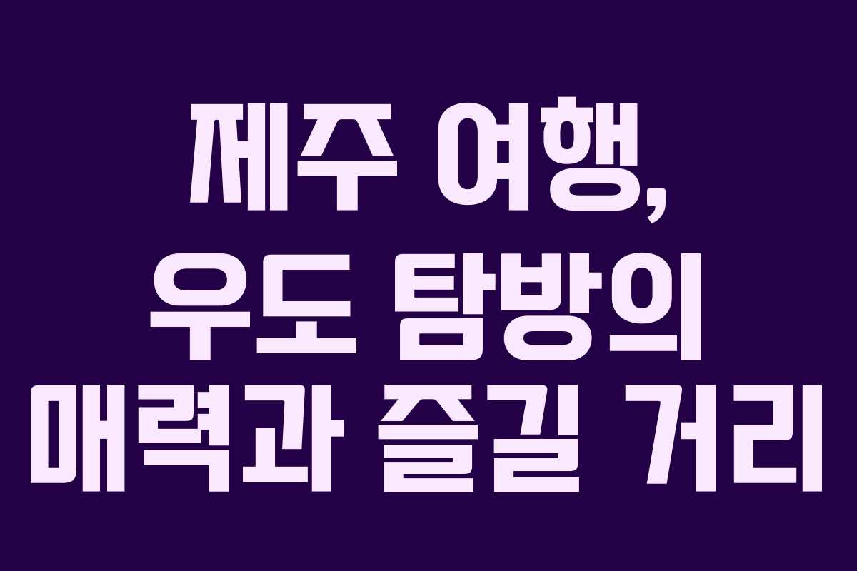 제주는 그 자체로 매력적인 여행지입니다. 특히 우도는 제주에서 빼놓을 수 없는 아름다운 섬으로, 많은 이들이 꼭 방문하고 싶어하는 장소입니다. 우도는 제주의 섬 중 하나로, 다양한 자연경관과 여유로운 분위기로 여행객들을 매료시키고 있습니다. 이번 포스팅에서는 우도를 방문하는 방법과 그곳에서의 특별한 경험에 대해 자세히 알아보겠습니다.