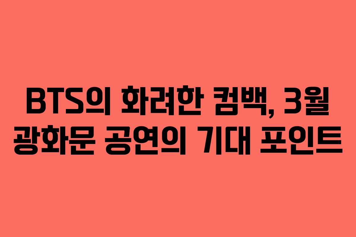 BTS의 광화문 컴백 공연은 그들의 음악적 여정과 팬들과의 특별한 유대감을 다시 한번 확인할 수 있는 소중한 기회가 될 것이다. 2026년 3월 21일, 이 역사적인 순간을 함께하며 BTS의 귀환을 축하하는 특별한 경험을 만끽하길 바란다.