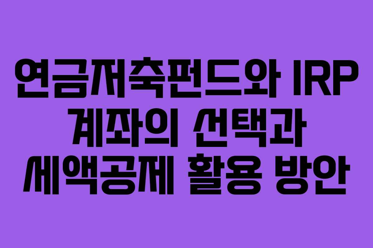 연금저축펀드와 IRP 계좌의 선택과 세액공제 활용 방안