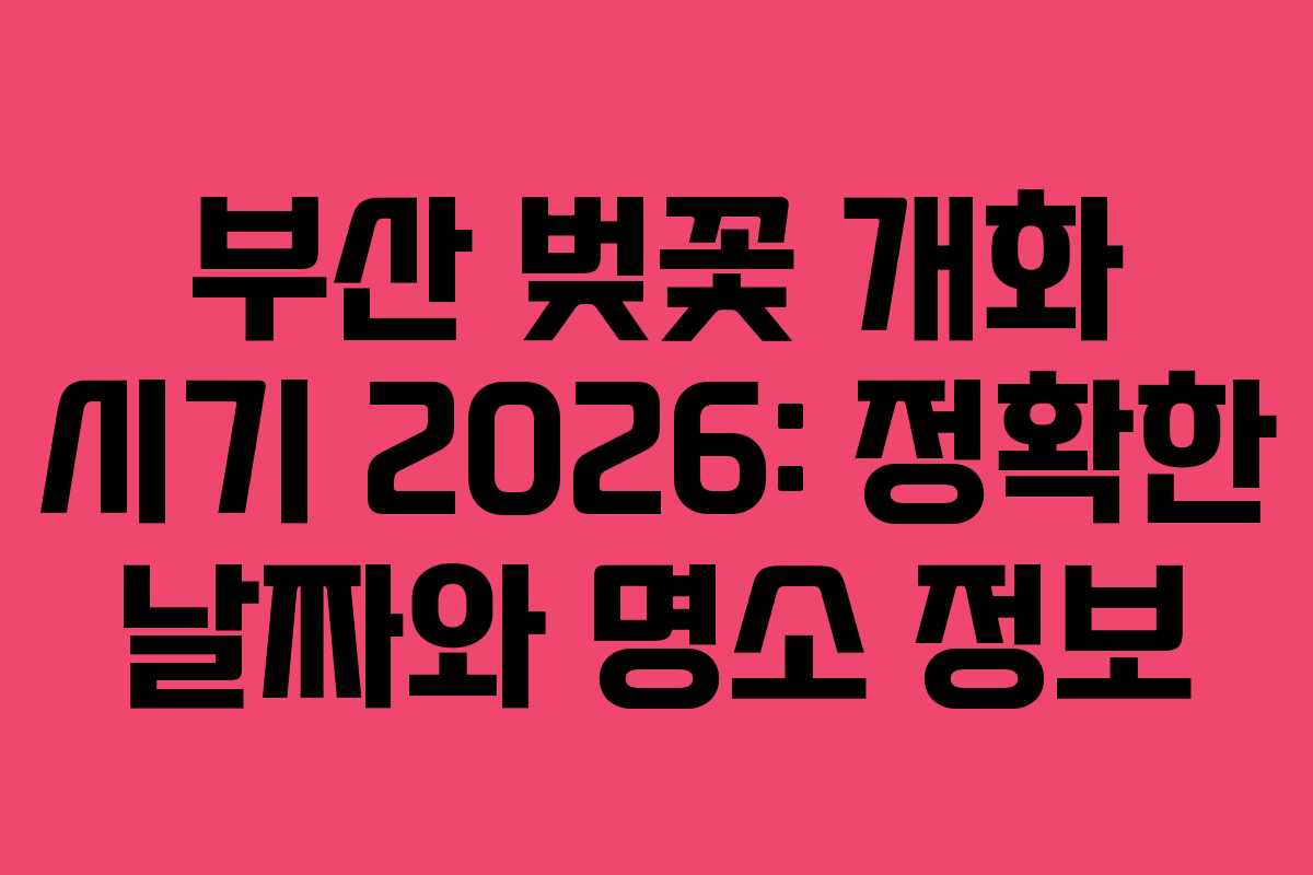 - 🤔 부산 벚꽃 개화 시기와 관련하여 진짜 궁금한 것들 (FAQ)