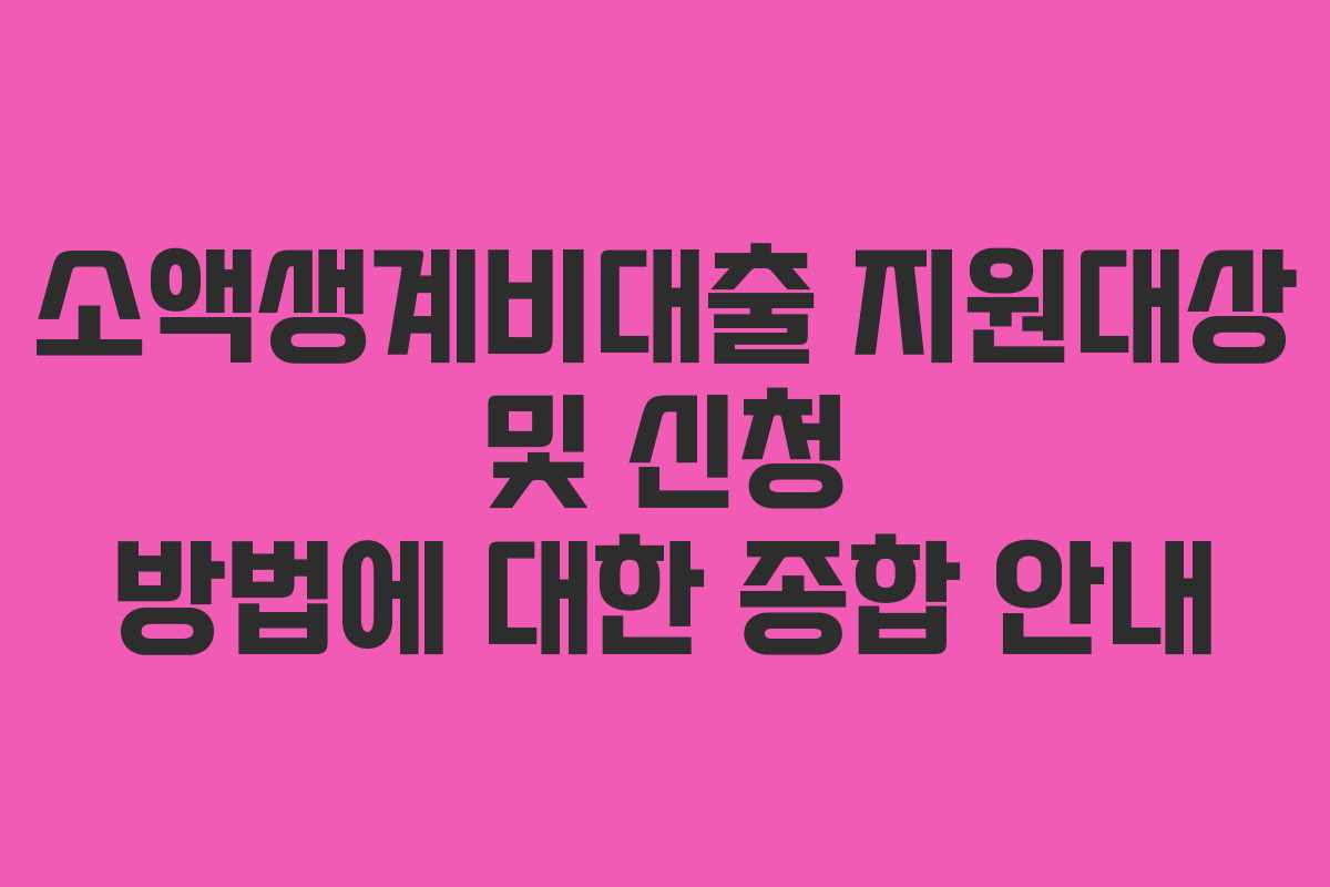 소액생계비대출 지원대상 및 신청 방법에 대한 종합 안내