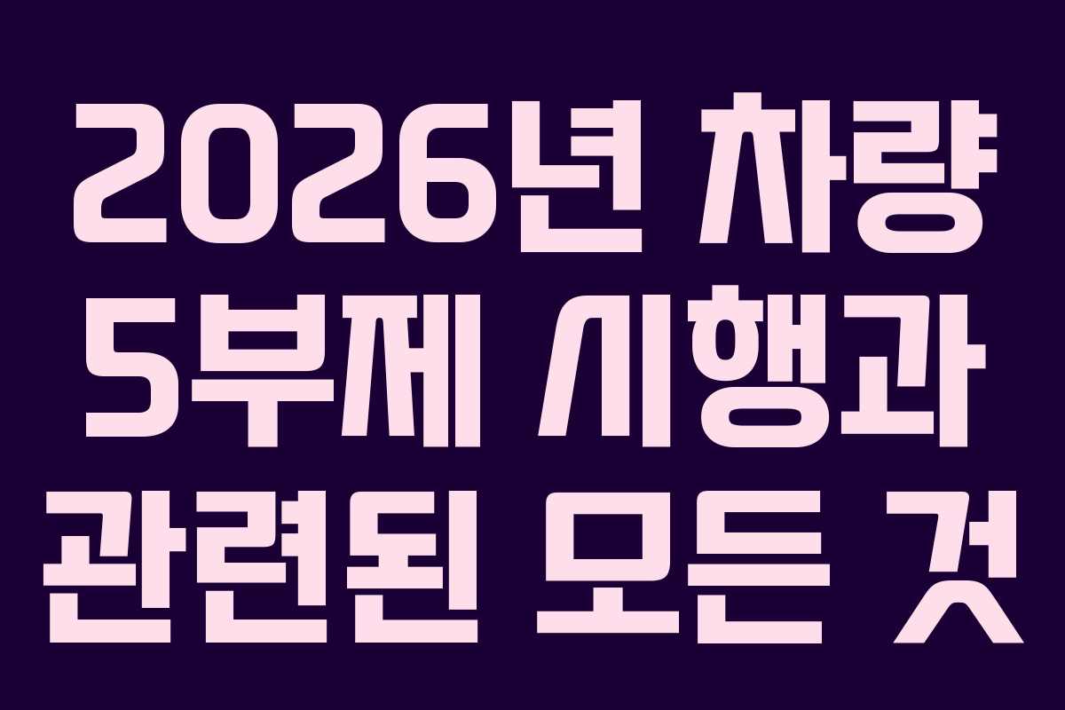 차량 5부제는 번호판 끝자리 숫자에 따라 평일 중 하루 운행을 제한하는 제도이다. 이 제도의 주된 목적은 에너지 절약과 유류 소비 감소에 있다. 즉, 특정 요일에 해당하는 번호판 끝자리를 가진 차량은 운행이 불가능해지며, 이는 교통량 감소와 대기오염 완화에 기여할 것으로 기대된다.