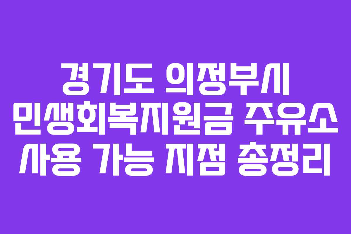 아래는 현재 의정부시에서 민생회복지원금을 사용할 수 있는 주유소의 리스트입니다. 각 주유소의 주소 및 전화번호도 함께 제공하니, 직접 방문 전 확인해보세요.