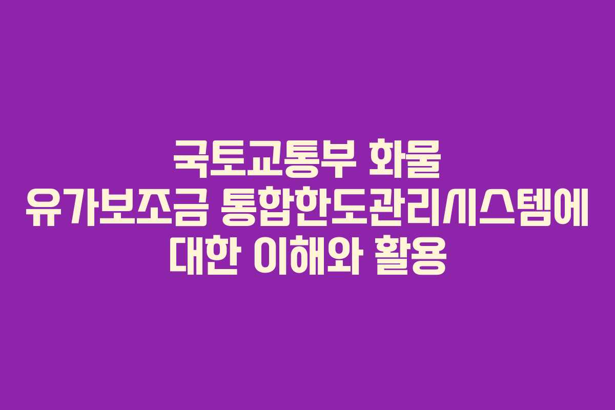 국토교통부 화물 유가보조금 통합한도관리시스템에 대한 이해와 활용