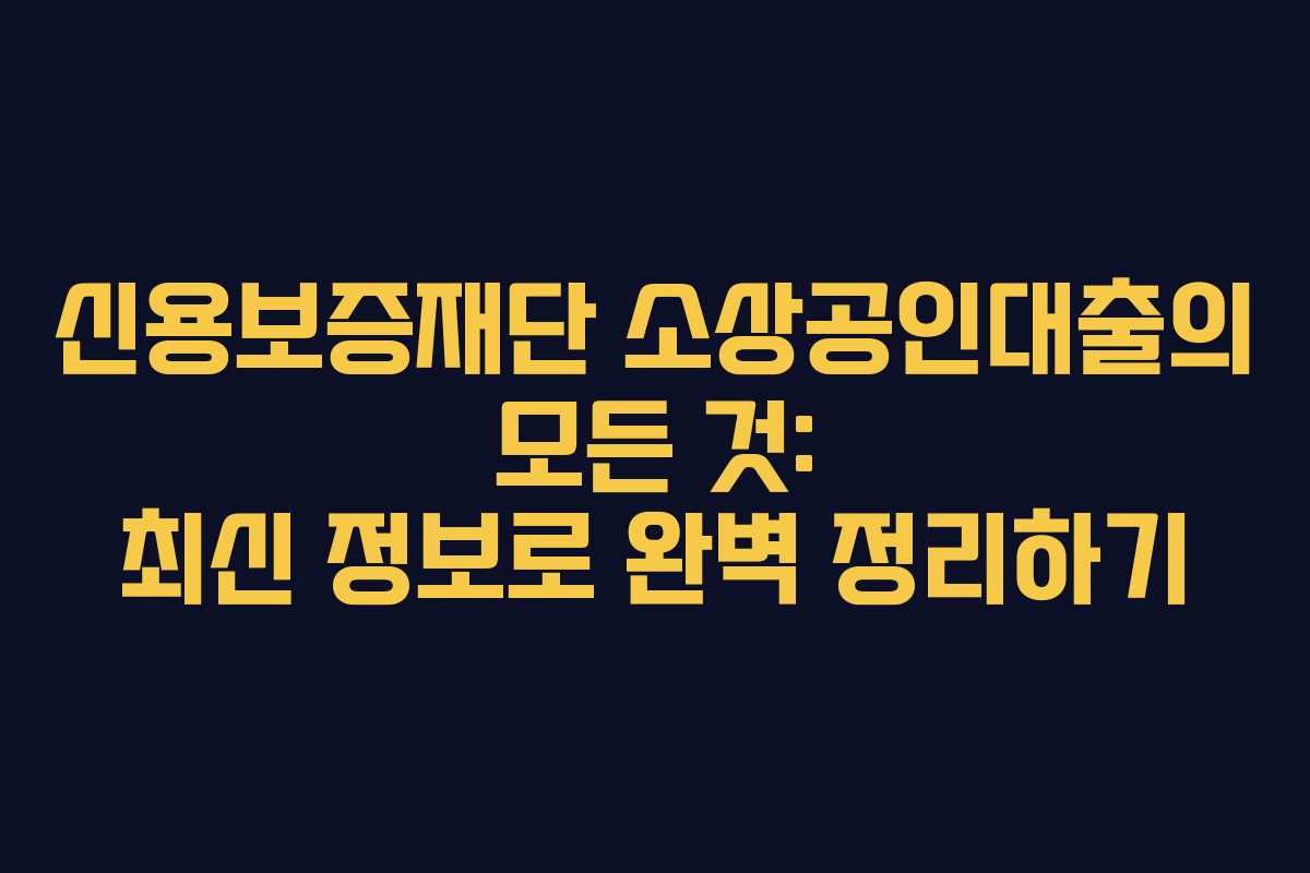 🤔 신용보증재단 소상공인대출과 관련하여 진짜 궁금한 것들 (FAQ)