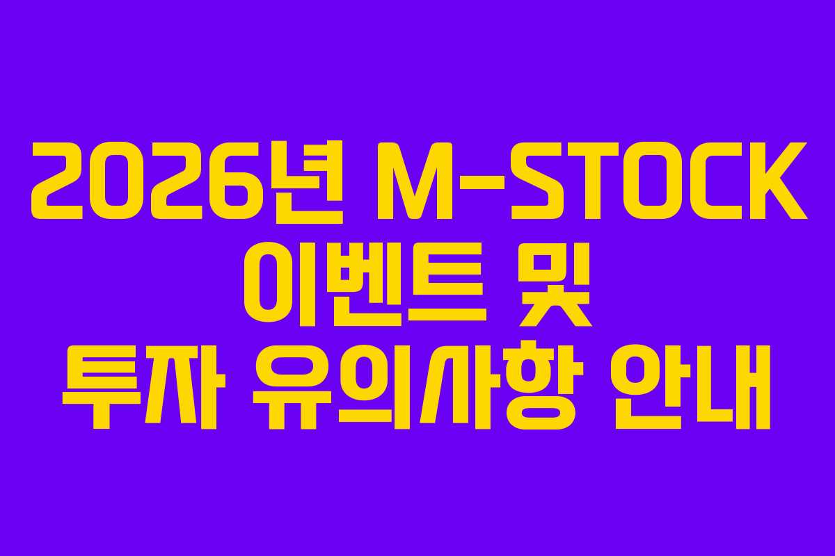 2026년에는 M-STOCK에서 새로운 이벤트를 통해 고객들에게 다양한 혜택을 제공하고 있습니다. 이 글에서는 M-STOCK 이벤트에 대한 정보와 함께 투자 시 유의해야 할 사항들을 살펴보겠습니다.