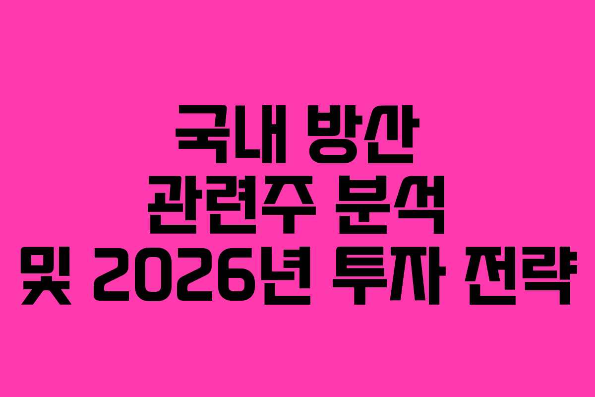 국내 방산 관련주 분석 및 2026년 투자 전략