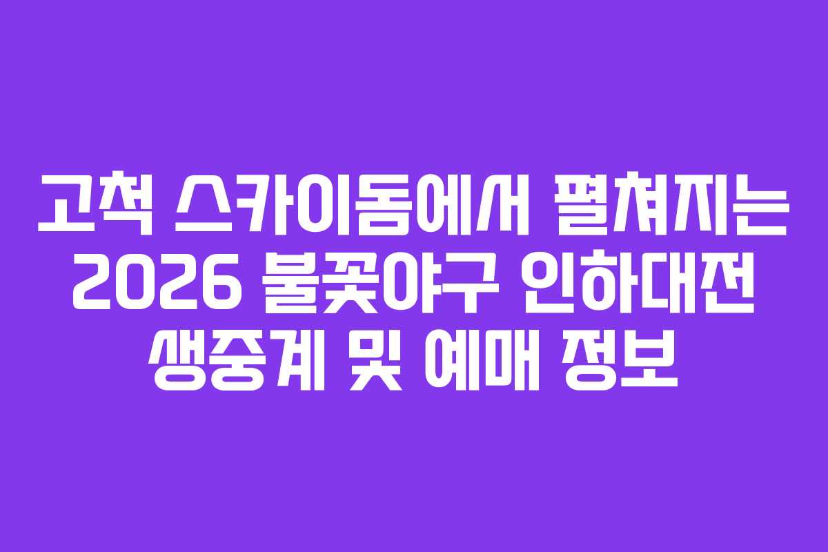 2026년, 고척 스카이돔에서 열리는 불꽃야구 인하대전이 많은 이들의 기대를 모으고 있습니다. 특히 김성근 감독이 이끄는 불꽃 파이터즈와 인하대학교 야구부의 대결은 야구 팬들에게 잊지 못할 순간을 선사할 것입니다. 오늘은 이번 경기에 대한 정보와 함께 예매 팁을 자세히 알아보겠습니다.