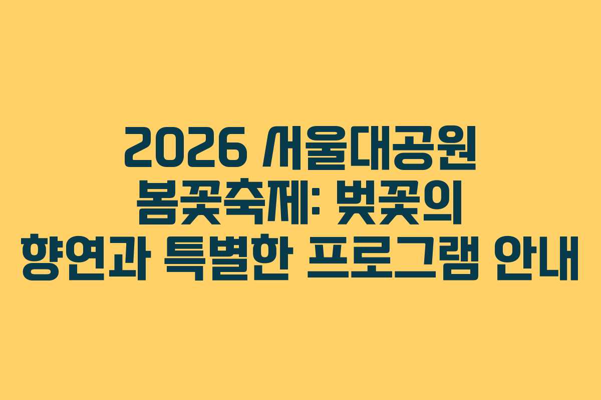 2026년 서울대공원에서 열리는 봄꽃축제는 벚꽃을 주제로 한 다채로운 프로그램이 마련되어 있습니다. 이 축제는 4월 4일부터 4월 12일까지 진행되며, 많은 이들이 즐길 수 있는 무료 입장 행사입니다. 본 가이드를 통해 이 축제를 최대한 즐길 수 있는 방법을 안내하겠습니다.