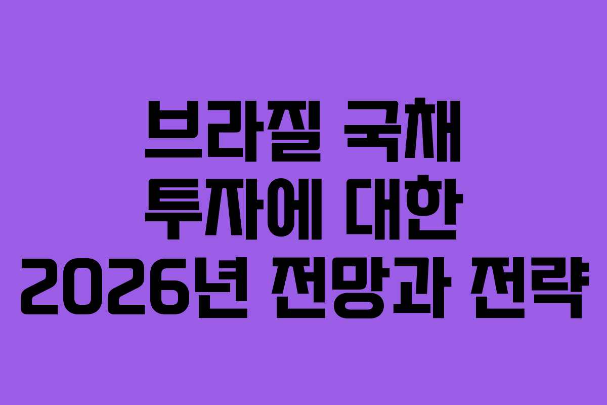 - 브라질 국채 투자 비중을 포트폴리오의 일부로 설정하되, 과도한 집중 투자 피하기.