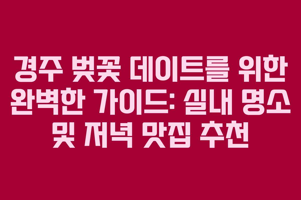 비 오는 날에도 경주에서의 벚꽃 데이트는 여전히 특별한 경험이 될 수 있습니다. 사랑하는 사람과 함께하는 여행에서 날씨는 단순한 변수일 뿐입니다. 경주는 실내에서도 즐길 수 있는 다양한 장소와 맛집으로 가득 차 있어 비가 오는 날에도 걱정 없이 로맨틱한 시간을 보낼 수 있는 최적의 장소입니다. 이번 가이드에서는 경주에서 비 오는 날 즐길 수 있는 벚꽃 데이트 코스와 저녁 맛집을 소개합니다.