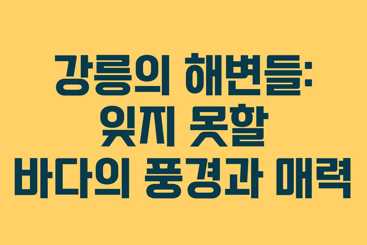 강릉은 동해안의 보석으로, 아름다운 해변과 풍경이 가득한 곳이다. 강릉의 해변들은 각기 다른 매력으로 방문객들을 맞이한다. 이 글에서는 강릉의 대표 해변들을 소개하며, 그 각각의 매력을 살펴보겠다.