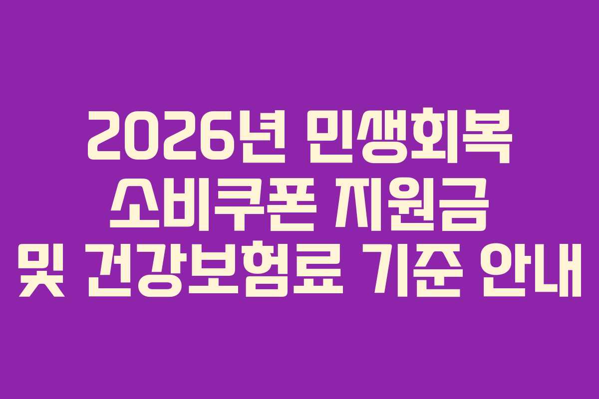 2026년을 맞아 민생회복을 위한 소비쿠폰 지원금과 건강보험료 기준에 대한 내용을 정리하였다. 각 가구의 상황에 따라 지급되는 금액이 달라지므로, 본인의 건강보험료를 기준으로 지원금을 확인하는 방법을 안내하고자 한다.