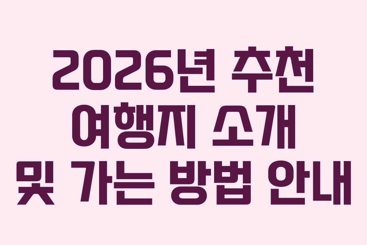 2026년 추천 여행지 소개 및 가는 방법 안내