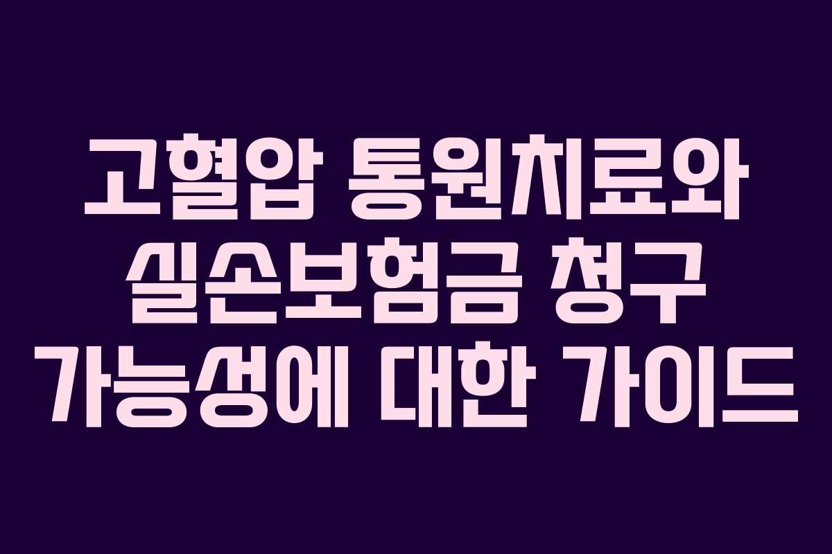 고혈압으로 인한 통원치료는 단순 외래 진료로는 청구가 어려운 경우가 많습니다. 정밀 검사 및 입원 치료를 동반한 경우에는 청구 가능성이 높아지며, 청구를 고려할 때는 반드시 필요한 서류를 준비하고 진료 항목을 정확히 확인해야 합니다. 이러한 과정을 통해 실손보험금을 적절히 청구할 수 있습니다.