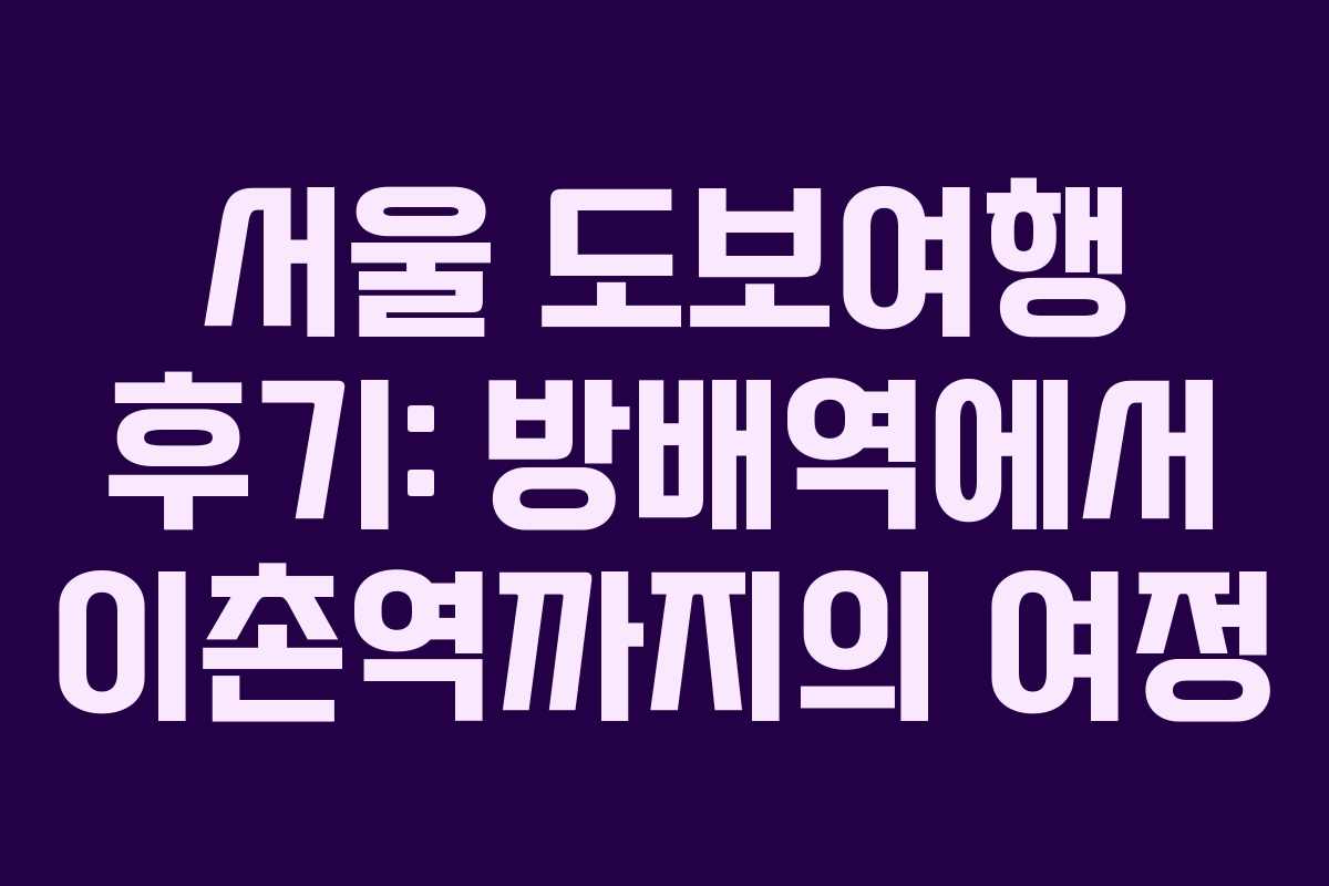 이처럼 방배역과 이촌역 사이의 도보 여행은 서울을 더 깊이 이해하는 기회를 주었으며, 앞으로도 많은 이들에게 추천하고 싶은 여행 코스가 되었다.