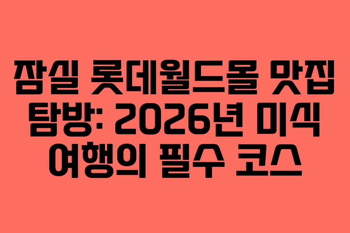 잠실 롯데월드몰은 서울에서 가장 다채로운 미식 경험을 제공하는 곳입니다. 2026년을 맞아 더욱 풍성해진 식당과 카페들이 여러분을 기다리고 있습니다. 세계 각국의 요리를 한자리에서 즐길 수 있고, 다양한 분위기를 가진 맛집들이 있어 선택의 폭이 넓습니다. 이번 글에서는 롯데월드몰의 주요 맛집들을 소개하며 여러분의 미식 여행을 돕겠습니다.
