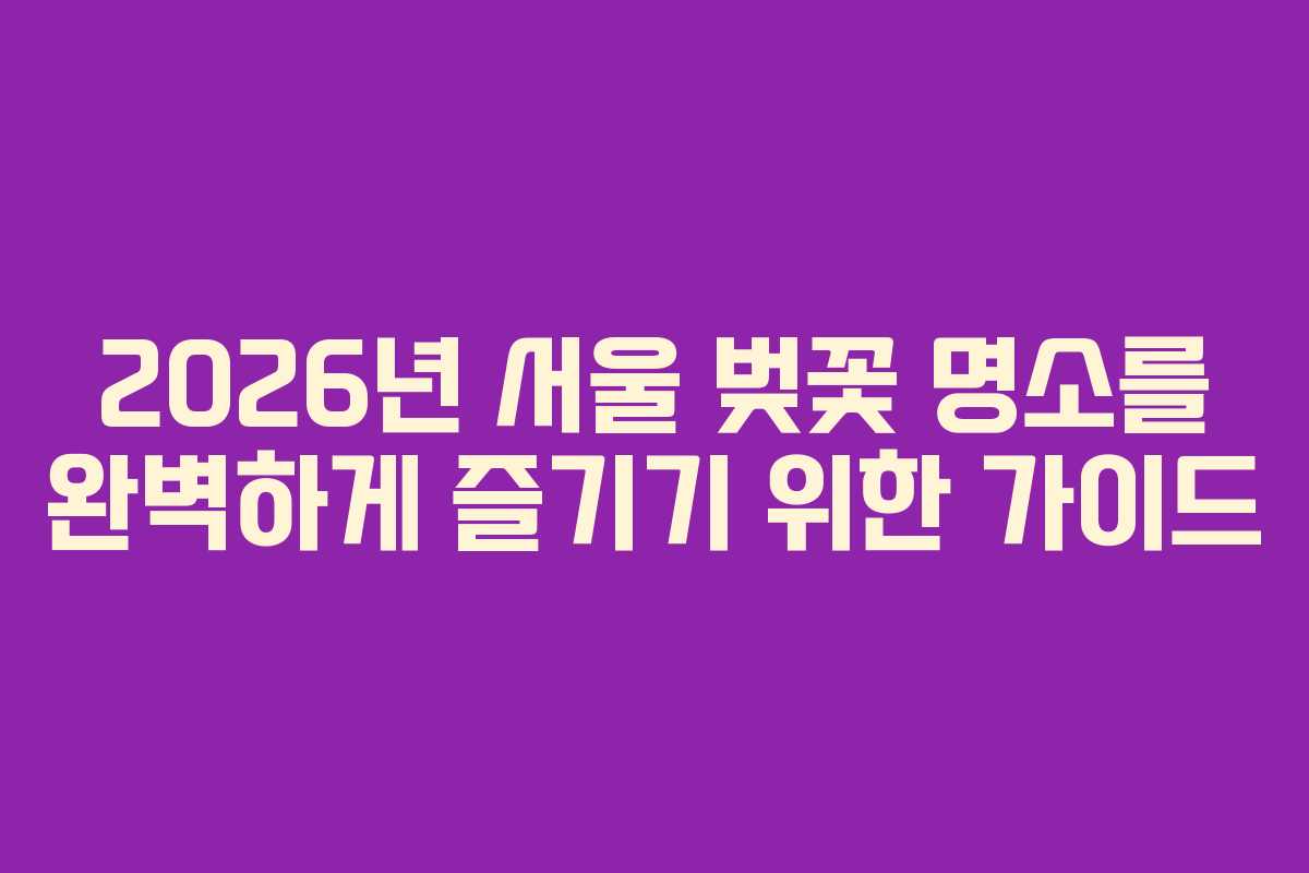 2026년 서울 벚꽃 명소를 완벽하게 즐기기 위한 가이드