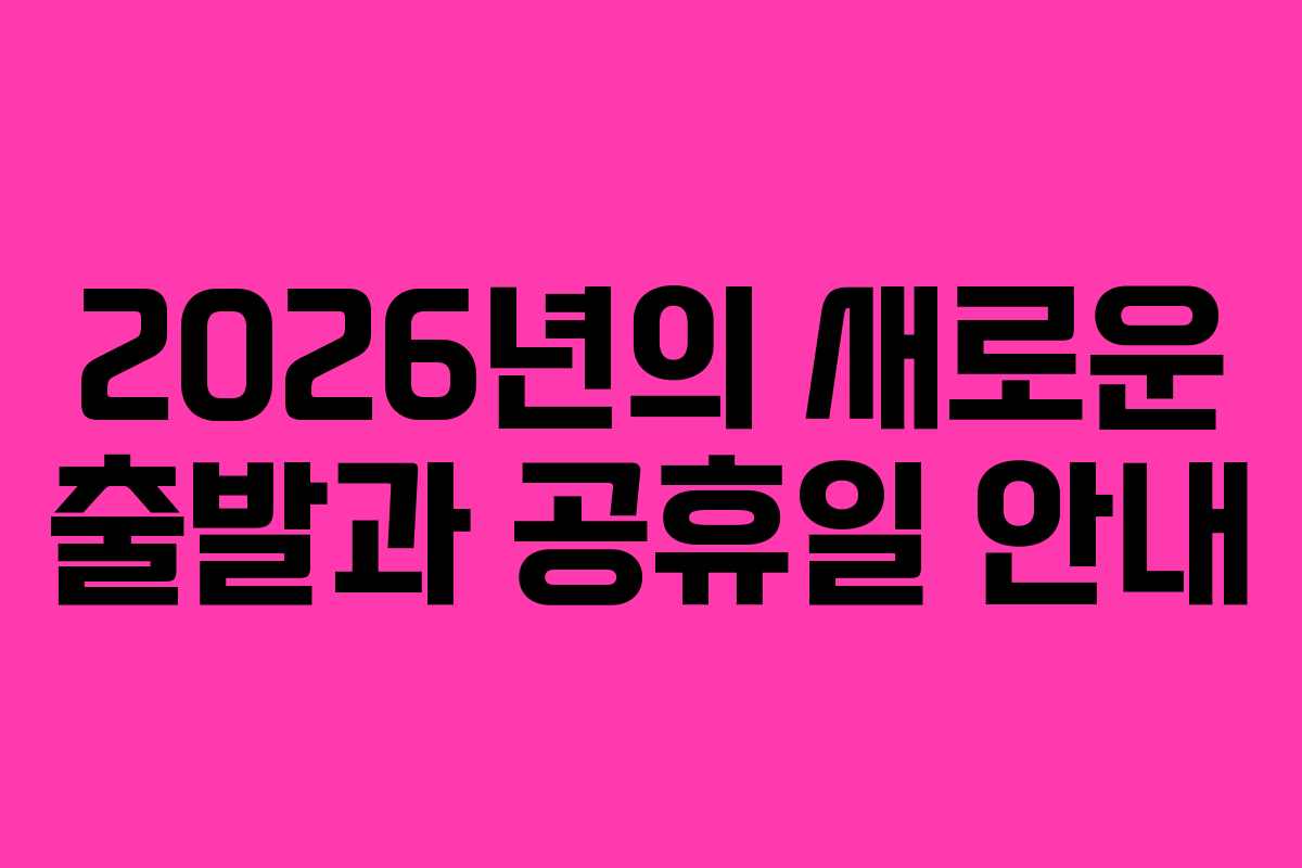 2026년이 시작되며 많은 이들이 새로운 목표와 계획을 세우고 있습니다. 2025년의 여러 어려움을 뒤로 하고, 긍정적인 마음으로 새로운 한 해를 맞이하는 모습이 보입니다. 특히 2026년의 다양한 일정과 공휴일을 알고 준비하면, 더 알찬 한 해를 보낼 수 있습니다. 본문에서는 2026년의 주요 공휴일과 그에 따른 휴가 계획을 상세히 살펴보겠습니다.