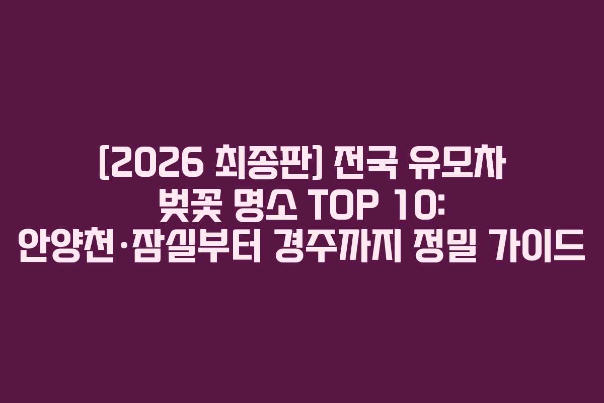 [2026 최종판] 전국 유모차 벚꽃 명소 TOP 10: 안양천·잠실부터 경주까지 정밀 가이드