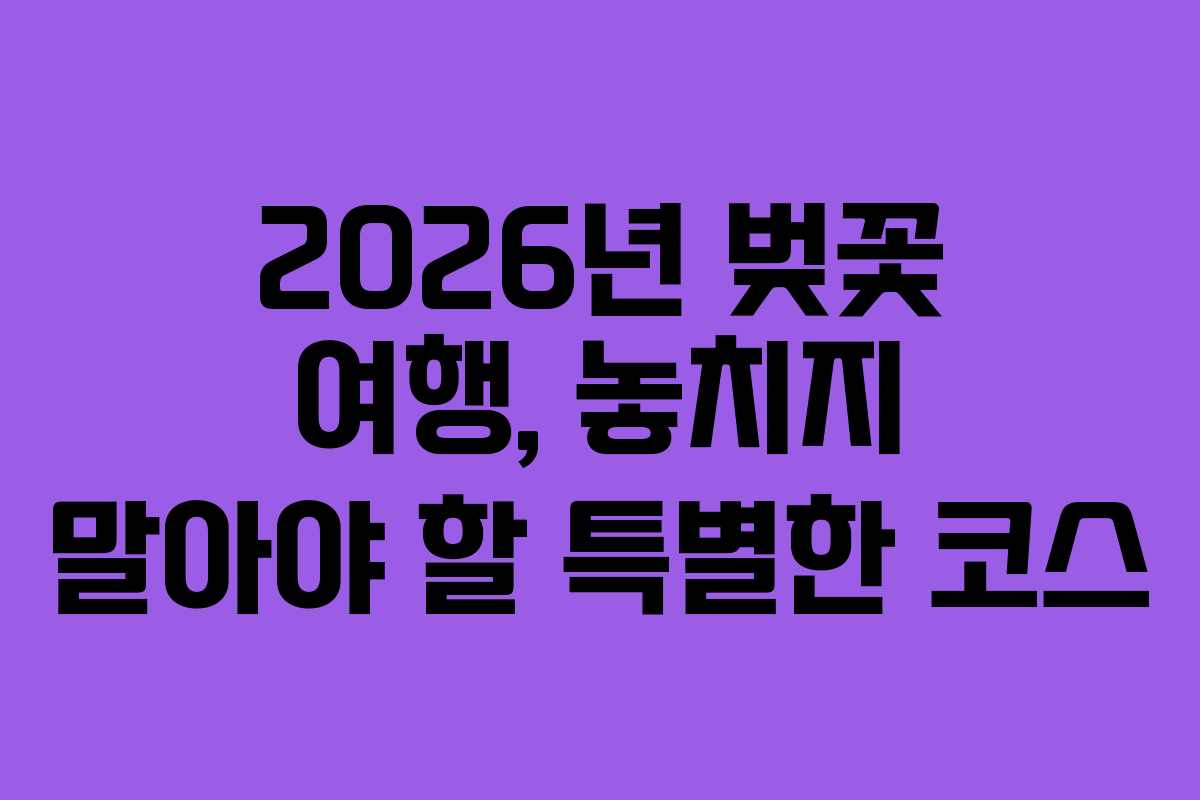 2026년 봄, 벚꽃 시즌은 놓치면 아쉬운 순간입니다. 꽃이 피고 지는 시기가 짧아 매해 많은 사람들이 이 아름다운 풍경을 보기 위해 길을 나서곤 합니다. 이번에는 벚꽃이 만개할 시기에 맞춰 전국적으로 하루씩 다녀올 수 있는 코스를 소개합니다. 2026년 개화 예정을 반영하여 각 지역별로 추천하는 벚꽃 명소를 정리했습니다. 이 기회를 통해 벚꽃을 만끽하고 소중한 순간을 담아보세요.