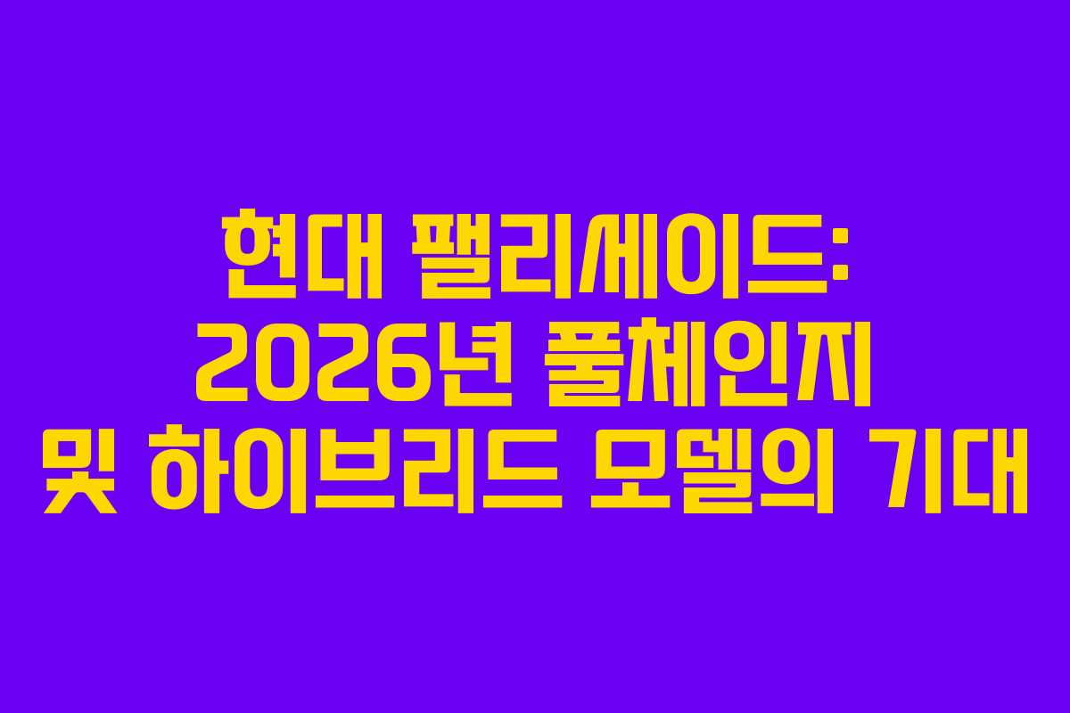 2026년 현대자동차의 팰리세이드는 소비자들의 큰 관심을 받고 있는 SUV입니다. 특히 풀체인지 모델의 출시가 임박하면서 더욱 주목받고 있습니다. 이 글에서는 팰리세이드의 현재 사양과 향후 변화에 대해 알아보겠습니다.