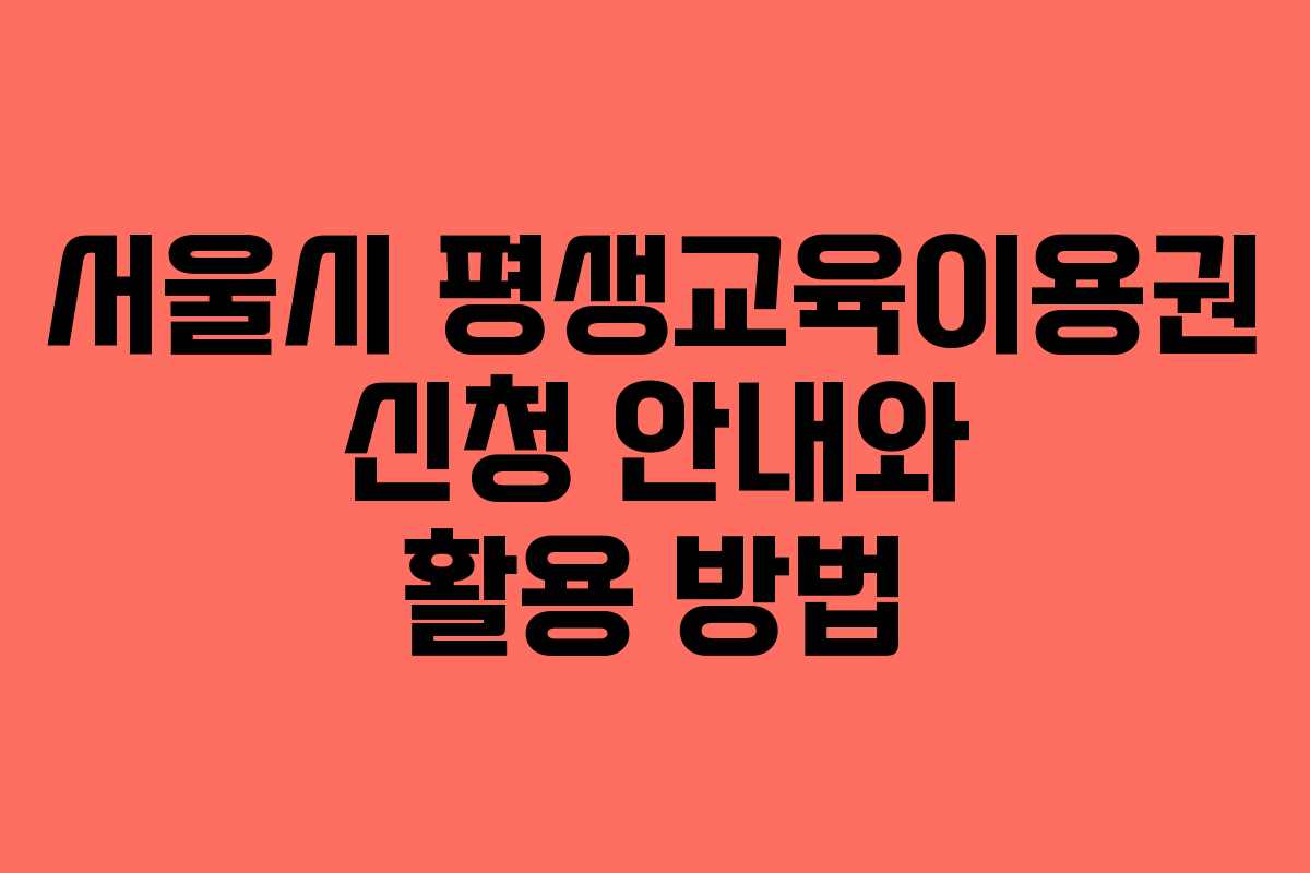 서울시 평생교육이용권 신청 안내와 활용 방법
