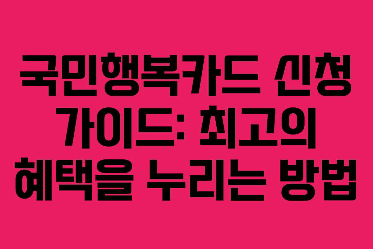 국민행복카드는 많은 이들에게 실질적인 혜택을 제공하는 유용한 카드입니다. 특히, 출산을 앞둔 분들에게는 더 유용할 수 있는 카드입니다. 이번 글에서는 국민행복카드를 신청하는 방법과 혜택을 자세히 알아보겠습니다.