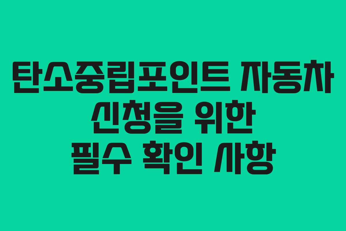 또한, 신청 마감일을 놓치지 않도록 주의해야 합니다. 선착순으로 진행되는 자동차 탄소중립포인트제와 같은 프로그램은 특히 신청 기간을 잘 지켜야 하며, 필요한 서류를 미리 준비하는 것이 좋습니다.