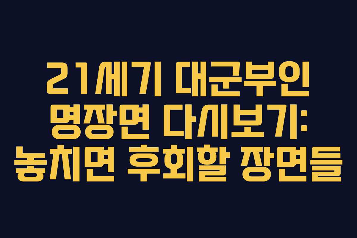 드라마 ’21세기 대군부인’은 방영 당시부터 지금까지 많은 사랑을 받고 있습니다. 이 드라마는 단순한 이야기 전개를 넘어 깊은 감정선과 인물의 복잡한 심리를 다루어, 많은 이들에게 잊지 못할 장면들을 선사했습니다. 오늘은 제가 이 드라마를 통해 경험한 것들을 바탕으로, ’21세기 대군부인’의 명장면들을 다시보는 방법과 그 과정에서 유의해야 할 점들을 상세히 나누어 보겠습니다.