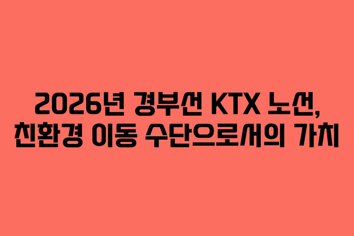 2026년 경부선 KTX 노선은 단순한 이동 수단을 넘어, 친환경적인 여행의 상징이 될 것입니다. 여러분도 저와 함께 KTX를 이용하여 편리하고 지속 가능한 여행을 즐겨보세요.