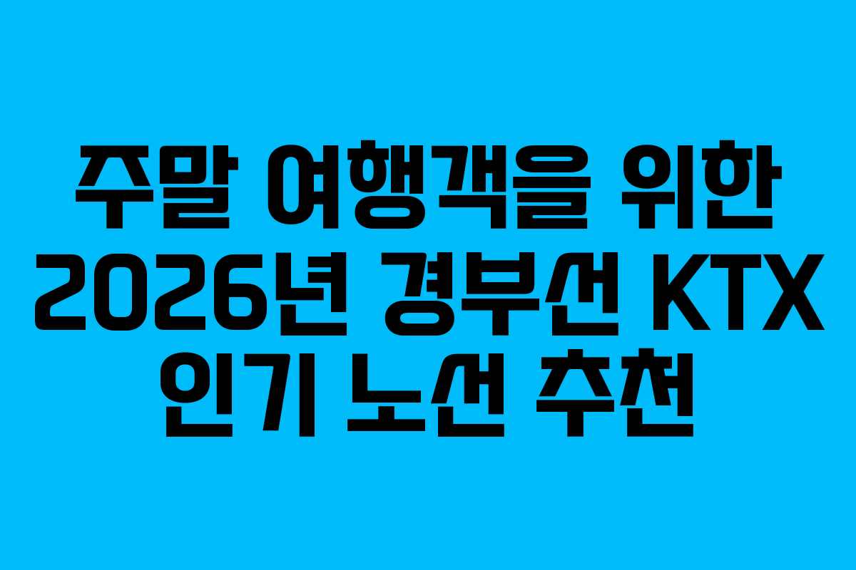 이번 포스팅을 통해 2026년 KTX 경부선의 매력을 느끼고, 주말 여행을 계획하는 데 유용한 정보가 되었기를 바랍니다. KTX를 타고 특별한 여행을 즐기시길 바랍니다!
