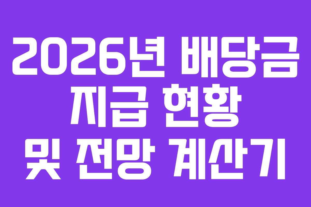 2026년 배당금 지급 현황 및 전망 계산기는 배당주에 투자하고자 하는 분들에게 필수적인 도구입니다. 잼투리의 배당금 계산기를 활용하면 개인의 투자 스타일과 목표에 맞춰 더욱 정확한 투자 계획을 세울 수 있습니다. 이러한 계산기를 통해 안정적인 수익을 추구하며, 미래의 재정적 자유를 위한 첫걸음을 내딛어 보시기 바랍니다.