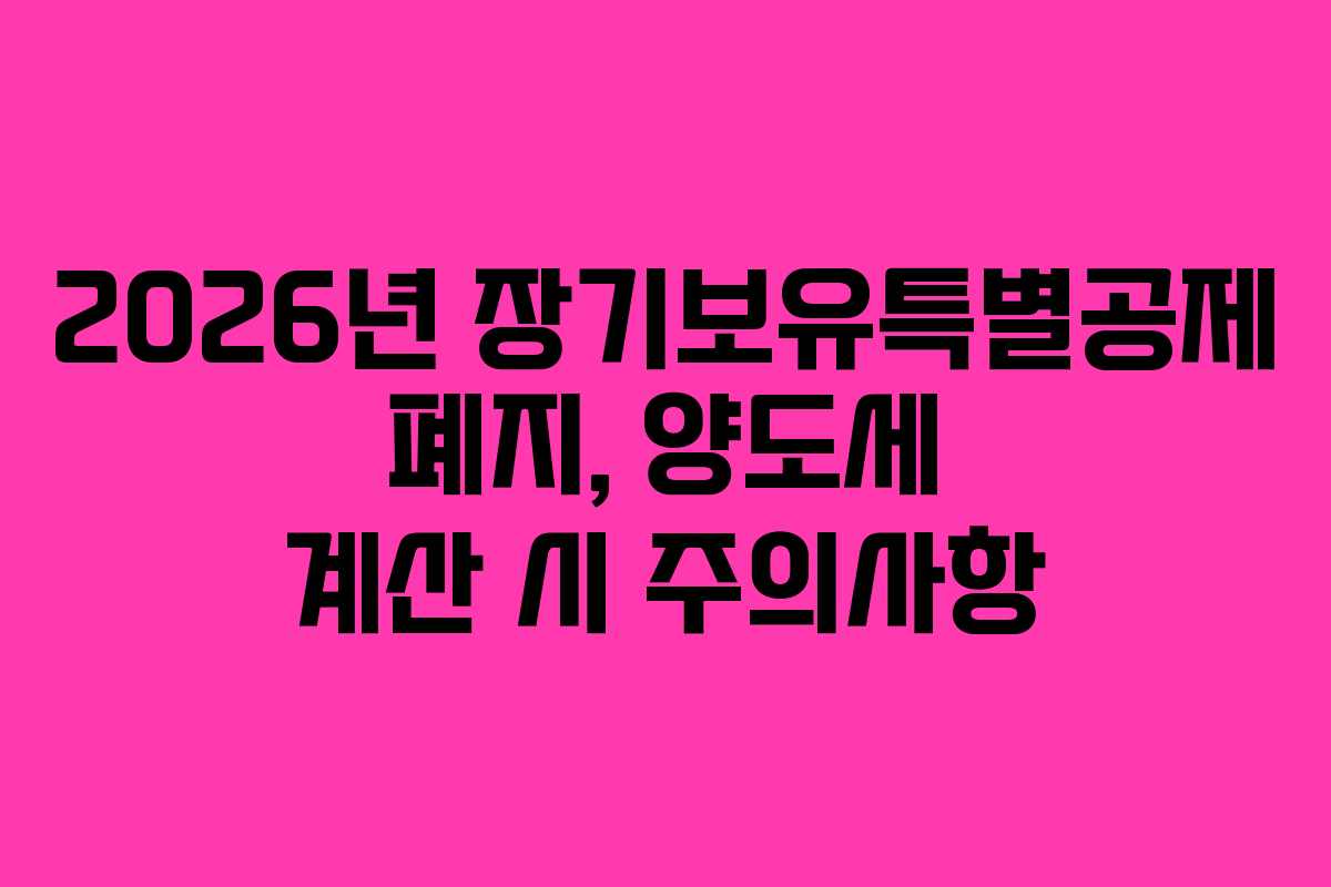 2026년은 부동산 거래에 있어 중요한 변곡점이 됩니다. 양도소득세의 변화가 예상되며, 특히 장기보유특별공제 폐지와 같은 중대한 조치가 시행됩니다. 이러한 변화는 많은 이들에게 실질적인 영향을 미치기 때문에, 사전에 철저한 준비가 필요합니다. 저 또한 부동산을 매매하며 여러 시행착오를 겪었기에, 여러분께 유용한 정보를 제공하고자 합니다. 이번 포스팅에서는 2026년 양도소득세의 주요 내용과 함께, 절세를 위한 전략을 여러분과 나누고자 합니다.