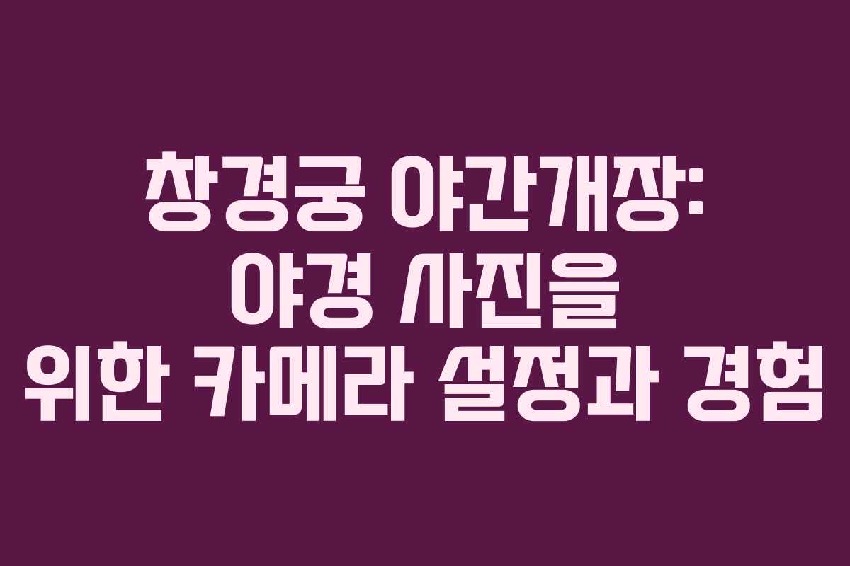창경궁의 야경은 그 자체로도 아름다움이 가득한 장소입니다. 역사적 가치와 함께 멋진 야경을 즐길 수 있는 이곳에서, 특별한 순간들을 사진으로 남기는 것은 인생의 소중한 경험이 될 것입니다. 여러분도 창경궁을 방문하여 그 매력을 느끼고, 멋진 사진을 남겨보시기 바랍니다. 준비가 잘 되어 있다면 더욱 멋진 경험이 될 것입니다.