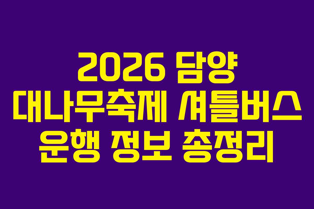 2026년 담양 대나무축제를 맞아 많은 이들이 대나무의 고장, 담양을 찾을 예정입니다. 하지만 이러한 축제의 인기로 인해 교통 혼잡이 우려되기도 합니다. 그래서 이번 글에서는 담양 대나무축제에 대한 전반적인 정보와 함께, 축제 기간 동안 운행되는 셔틀버스에 대한 상세 정보를 제공하고자 합니다. 이를 통해 여러분이 편리하게 축제를 즐길 수 있도록 돕겠습니다.